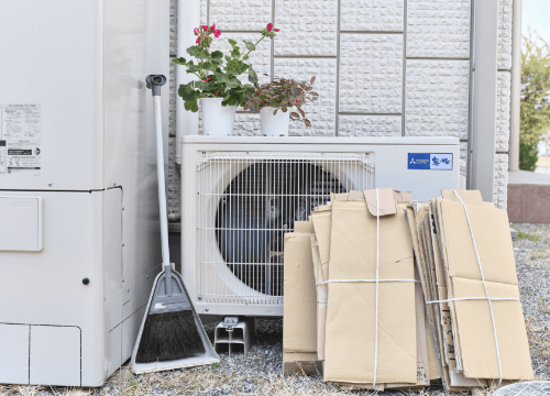 ・直射日光が室外機本体に当たり高温になると室外機が熱を逃がしにくくなるため、冷房効率が低下します。室外機用の日除け(メーカー別売部品)を活用して直射日光を遮るのがおすすめです。