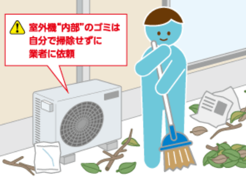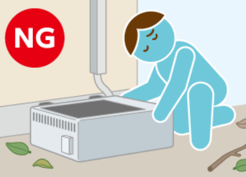 災害発生時は、身の安全を最優先し、室外機が倒れるなどのトラブルが発生しても外に見に行ったり、起こしに行ったりしないようにしましょう。