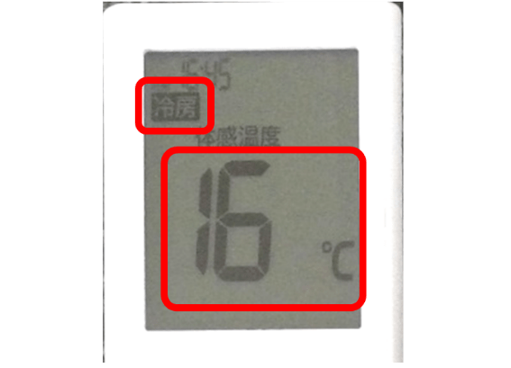 「リモコンの画面の設定温度は何℃になっている?」と聞く。