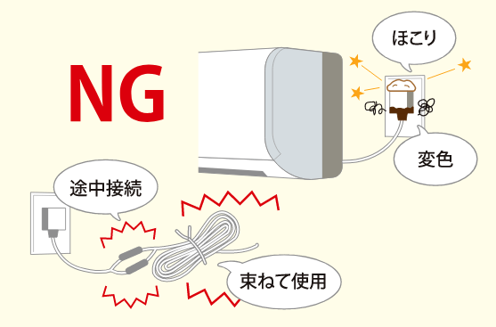 ほこりや詰まり、変色やがたつきやゆるみがないか、