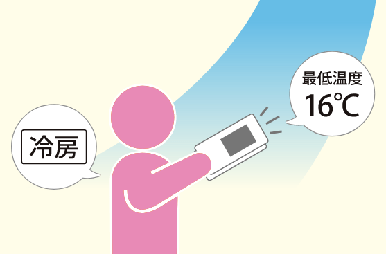 ※環境温度より設定温度が高い場合、冷房ではなく 送風運転になることがあります。最低温度に設定し、確実に試運転を行ってください。異音や異臭、その他異常があった場合はメーカー、販売店へお問合せ下さい。