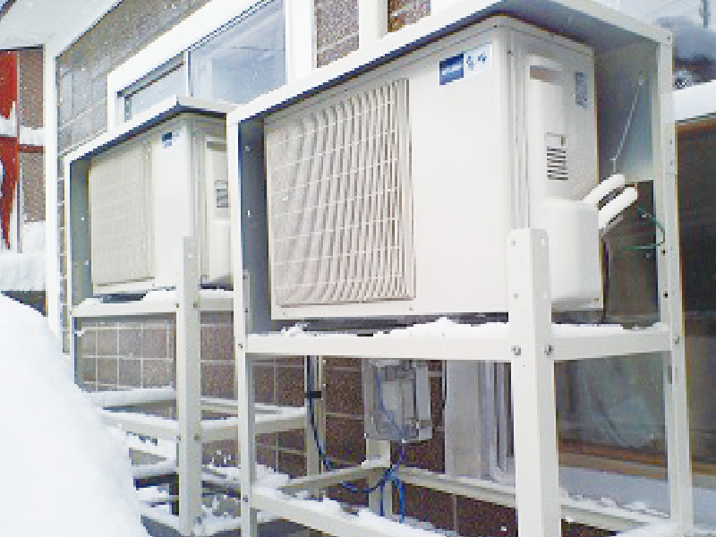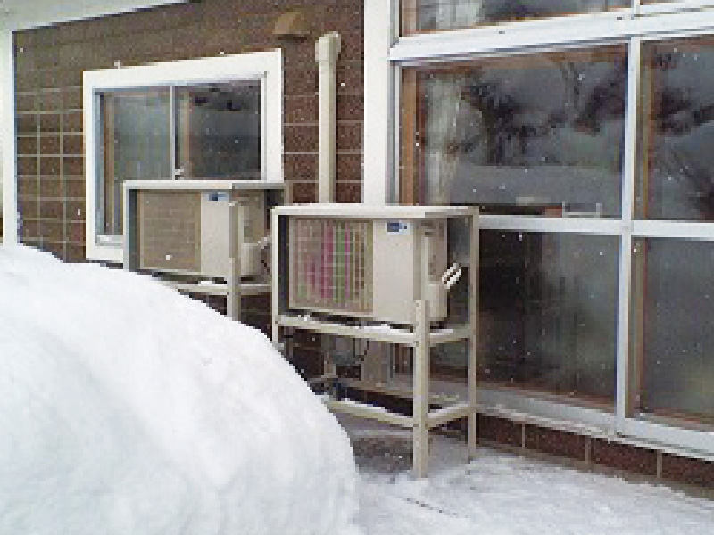 たとえば名寄市。ここでは、外気温が-25℃まで下がる上に、積雪は2m。北西の季節風も強い。陸別の地だけでは不十分だ。その後は、条件の違う数カ所にわたってテストを繰り返した。陸別、名寄のほかにも、千歳そして札幌。ただその地で試験したというアリバイ作りのためのテストではない、より実効性の高いテストを追求した。室内環境も、住宅はもちろん、より厳しいところを選んで行った。たとえば、ペアガラスも断熱材もないプレハブ小屋など、きわめて断熱性能の低い空間でも室内温度を30℃まで上げられるのか?といった限界試験。また、一般家庭では、日常生活の中での体感的な暖かさから、霜取り運転の実態や電気代の推移までを、徹底的に検証した。セントラルヒーティングをわざわざ止めて、1シーズンをエアコンだけで過ごしてもらうという無茶なお願いもした。