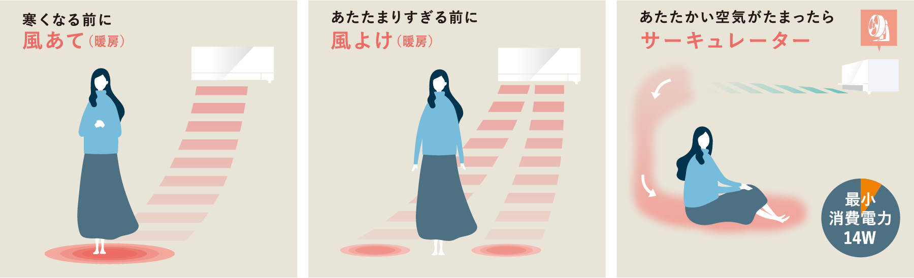 冬は「エアコン」と「サーキュレーター」のいいとこどりで、快適と省エネ※2