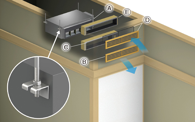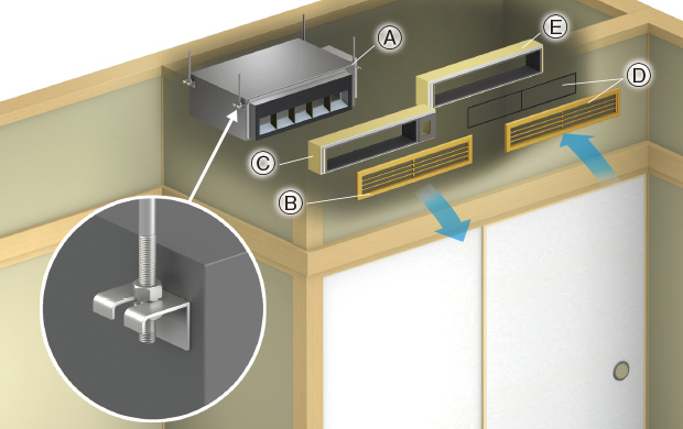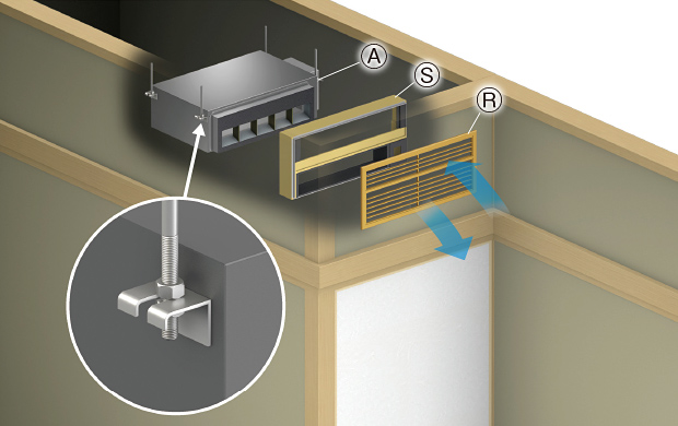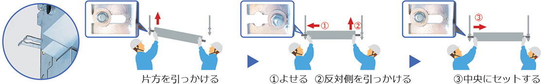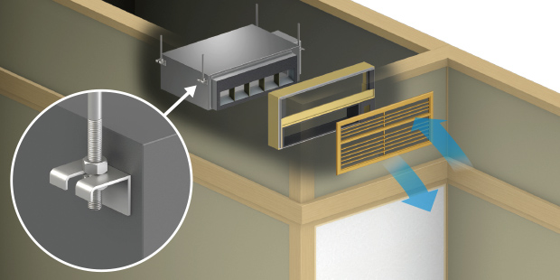 天井への据付作業を簡単に。作業時間短縮に貢献します。