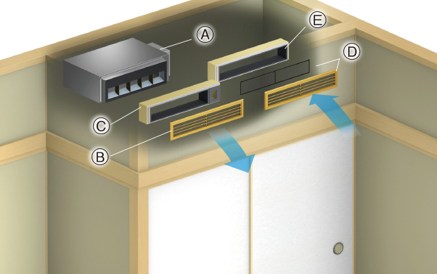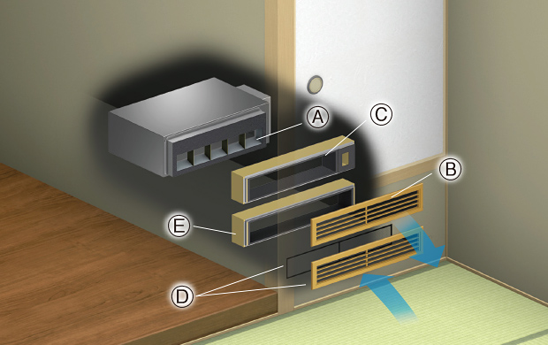 *室内機収納室は外部の空気を吸い込むことのないように、配管貫通部や板のあわせ目などをしっかりふさいでください。