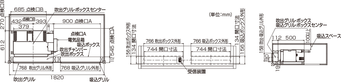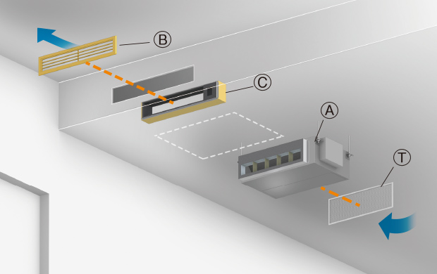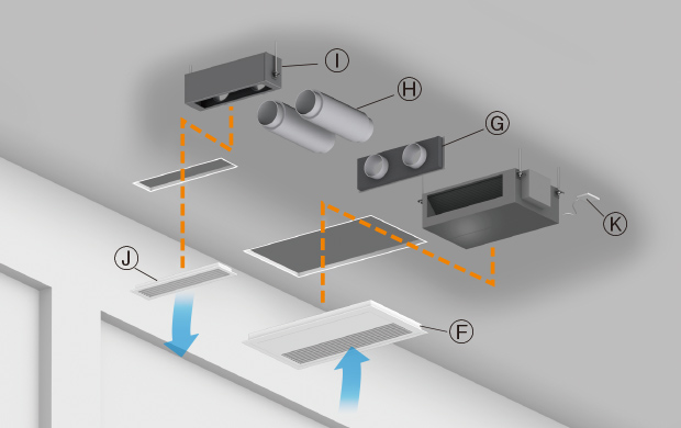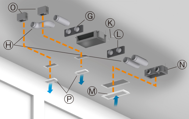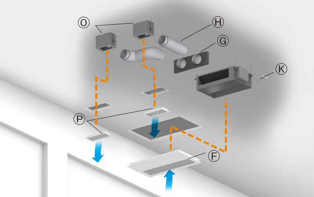 パターンK天埋設置吸吹両ダクトタイプ[1方向吹出]