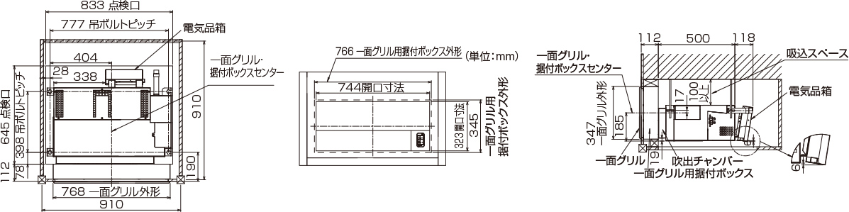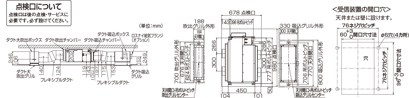 - 下吸込パネル取付け用の天井開口部が点検口になります。