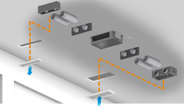 パターンL天埋設置吸吹両ダクトタイプ[2方向吹出]★