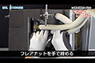 「シングルスパナ配管接続」+「断熱材レス対応カバー」で配管作業がスムーズ(写真はフリービルトイン形)。