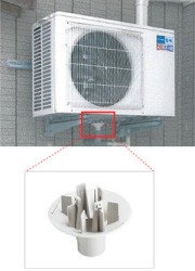 たとえば、山形、新潟、富山、石川では、冬のドレン※1 対策が足かせで販売店が苦労していた。通常のドレンソケット※2 では径が細く、排水が凍りついてしまう。そこで、『ズバ暖』専用のドレンソケットを製品化。従来比2.5倍の太さで配管内凍結を防止した。