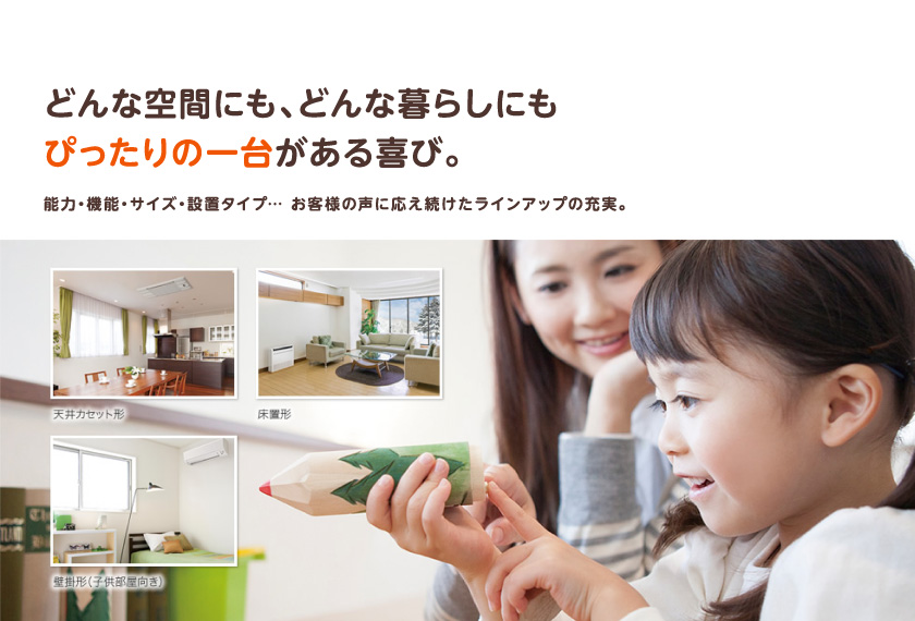 使う人、売る人の声に、きめ細かく対応し続けた結果、『ズバ暖』のラインアップは、充実さを増している。地域特性はもちろん、住宅の規模・構造・間取り、新築・改築など、様々な条件にぴったりな一台を選べる商品展開を実現している。