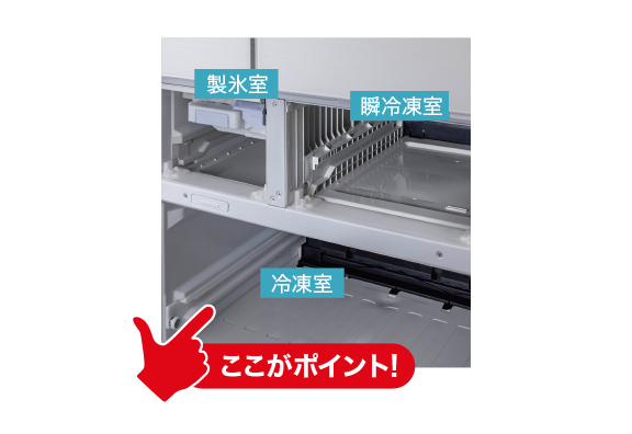 冷凍3室も完全に分離しているからニオイ移りもしにくい
