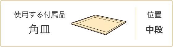 - 加熱が終了したら、角皿を取り出して前後を入れ替える。