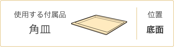 - 5.を角皿の上にのせて庫内底面に置き、[オーブン][予熱なし]160℃で、約40分焼く。