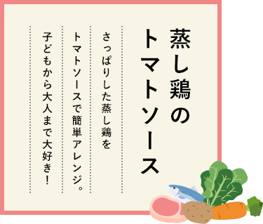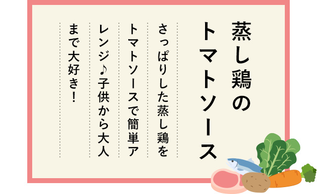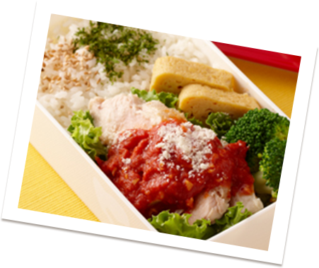 - 3.そのまま保存容器に入れ、「切れちゃう瞬冷凍A.I.」で凍らせる。※凍ったままの蒸し鶏を適宜取り出してお弁当箱に詰め、凍ったままのトマトソースをすくってのせ、粉チーズをふりかける。
