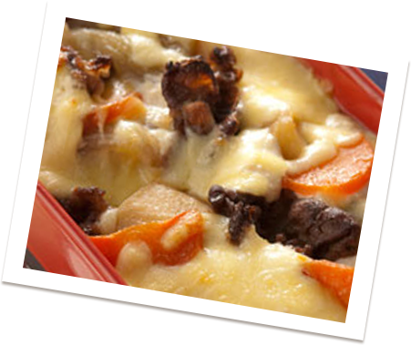 - 3.耐熱皿に冷凍の肉じゃがをそのまま並べ、2.のソース、チーズを順にのせる。240℃のオーブンで10分ほど、焼き色がつくまで焼く。
