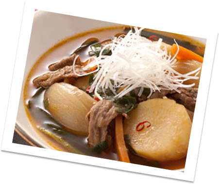 - 3.煮立ったらAと肉じゃがを加えて温める。皿によそい、白髪ねぎを盛る。