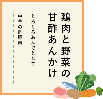 - 2.Aをフライパンに入れて煮立て、1.、凍ったままの鶏肉と野菜の甘辛煮を加える。