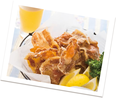- 3.2.の余分な衣をはたいて落としながら、170℃位に熱した揚げ油で、じっくり揚げる。