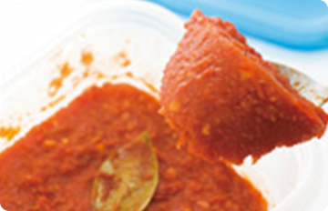 - 2.1.にトマト缶、ローリエ、固形コンソメを入れ、水分をとばしながら煮詰め、「切れちゃう瞬冷凍A.I.」しておく。