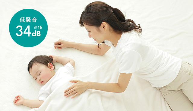 稼働音が静かだから、夜間の使用も昼寝している子どものそばでも気にせず使える。