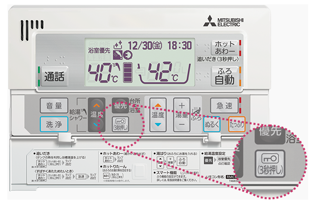 ふろ自動運転や湯量・湯温設定など、ボタンひとつで一発操作OK。