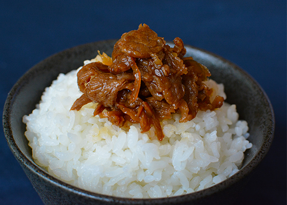 松阪牛、神戸牛とともに日本三大和牛と言われる米沢牛。この牛肉を甘辛い特製タレと千切り生姜で炊き上げました。あつあつの「雪若丸」との相性も抜群で、ごはんが進むこと間違いなし!