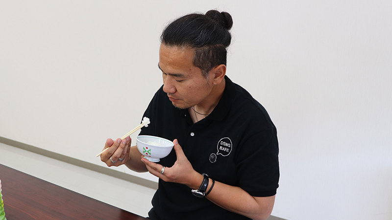 四季ふぁ~むの土屋喜彦さん見た目が全然違いますね! 「つや姫」はその名前の通り、つやつやした見た目も特徴なんですが、これほど粒立ちよく炊けた「つや姫」は初めてです。粒感があって、弾力があって、しかももっちりしている。すごいですね……。