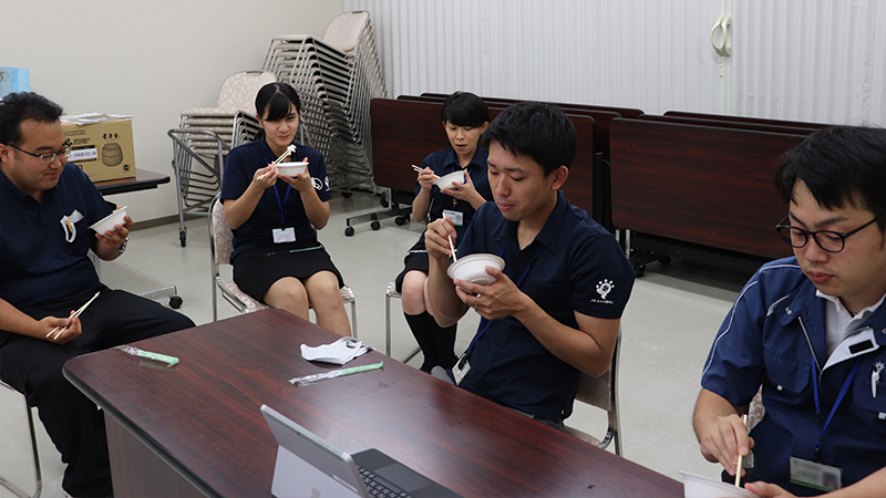 四季ふぁ~むの土屋喜彦さん、山形県県産米ブランド推進課 三瓶直子さん、JAさがえ西村山のみなさんに試食していただきました。うれしいコメント、ありがとうございました。