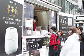 三菱ジャー炊飯器 三菱ジャー炊飯器製品ページへ お米塾のメニュー お米塾トップ お米塾について お米に関する講座 活動レポート おいしいお米、おいしいごはんの探求と普及のため、ゆくよどこまでも!日本全国、そして海外でも、さまざまな活動を行うお米塾の講師、スタッフたち。その原動力となっているのは、みんなにおいしいごはんを食べていただきたいという熱い気持ちです。こうした願いの実現のため、お米農家さんと一緒に米作りをしたり、全国のかまどごはんを食べ比べたり。各地での調査研究から消費者の皆さんと触れ合うイベントまで、幅広い活動を行っています。 全国ブランド米産地生産者交流大会in山形 銘柄の特長を引き出せる本炭釜 KAMADOが大活躍! 契約水田お米栽培プロジェクト お米から炊飯を考える三菱電機は、日本有数の米どころ宮城県登米地区の専用水田でお米を栽培しています。 かまど炊き研究隊が行く! 究極の一杯の研究に欠かせないかまど炊き。 全国のかまどを巡ります! オレペ大感謝まつり2016 ご来場の皆さんに「本炭釜 KAMADO」で炊いたごはんを試食していただきました。 ママサカス 2016 「本炭釜 KAMADO」おにぎり大試食会を実施しました。 講義レポート in 東京工業⼤学 お米塾講師の松村眞介(三菱電機ホーム機器ジャー炊飯器販売促進チーム)が東京工業大学に招かれ、「炊飯器ビジネスの現状と課題」をテーマに講演を実施しました。 FOOD TAIPEI 2015 三菱ジャー炊飯器が、台北で開催された「FOOD TAIPEI 」で使用されました。