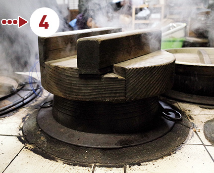 湯気が収まってきたら、火を引きます。ここから約30分のむらし。時間をかけてむらすことで、釜の内側にごはんがくっつくのを防ぎます。
