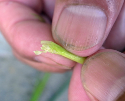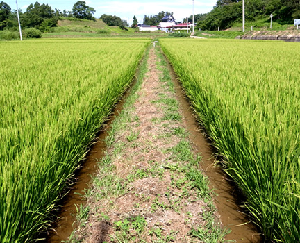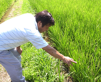 カメムシの住みかをなくすため、草刈りは茎から穂が出る出穂(しゅっすい)の2週間前に終わらせます。