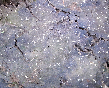 田んぼの地面は、役目を終えたおしべでいっぱい。