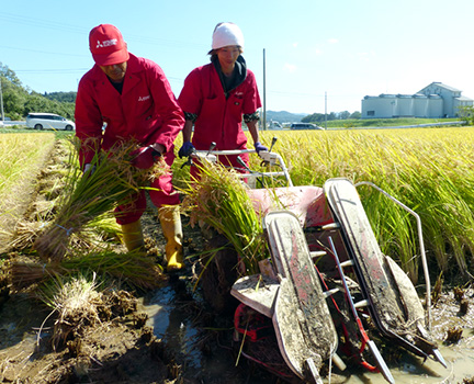 オリジナル米は、茎の一部が青いうちに刈り取る「早刈り」で収穫します。成熟しきってから刈るのと比べると若干収穫量は減ってしまいますが、食味や香りは断然こちらのほうが上。こだわりのお米だからこその選択なのです。