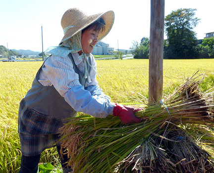 また、お米を「天日干し」で乾燥させるのも、オリジナル米のこだわり。その分工程や日数はかかりますが、一般に流通する機械乾燥されたお米よりもおいしく仕上がるといわれます。「稲は刈り取っても3~4日は生きているため、茎の養分を吸収させながら自然に乾くのを待つのがいちばん。天日干ししたお米は、来年の夏になっても安定した品質で食べられるのが特長です」と木村さん。おいしいお米づくりのためには、手間を惜しまないのがオリジナル米のポリシーなのです。