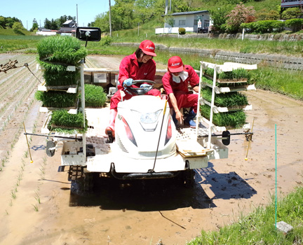 宮城県登米地区の専用水田で実施している三菱電機契約水田お米栽培プロジェクト。