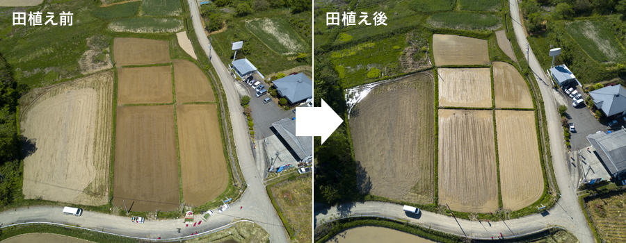 ちなみに今回はドローンを使って空から見た専用水田の様子を撮影しました。