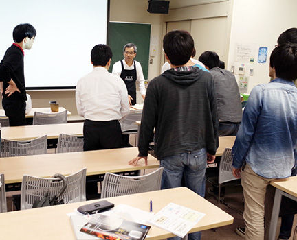 講義と試食のあとは、質疑応答。「炊飯器の買い換えサイクルと、それに伴う開発サイクルは?」「海外、とくに中国に向けた製品開発などは?」「国によって異なるおいしさへの対応は?」など、将来のビジネスを視野に入れた理工学生らしい質問を数多くいただきました。なかには、「売れ行きの機種系列は?」「一定数のラインアップを揃えるのはなぜか」といった鋭い質問も。