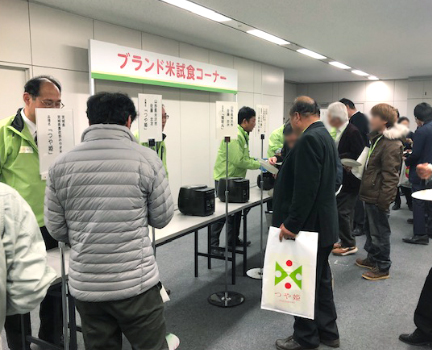 ブランド米試食コーナー前に行列!