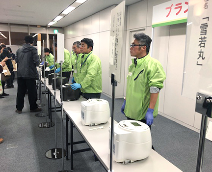 多くの産地・銘柄のお米が並ぶ試食コーナーでは、それぞれのお米の特長を引き出せる<本炭釜 KAMADO>が大活躍しました。