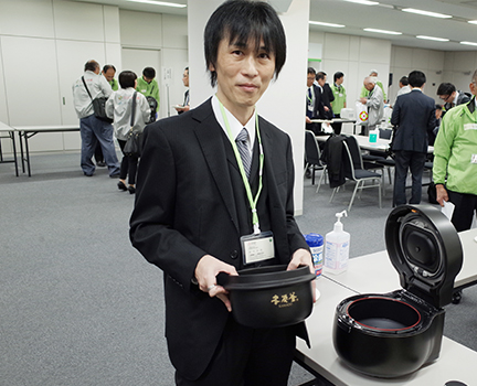 炊飯器の開発を手がける三菱電機ホーム機器の根岸が技術的な説明をし、