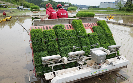 同じ銘柄のお米でも、米農家さんの栽培方法や天候等によってお米の出来は大きく変わってきます。どんなお米もおいしく炊飯できるように、わたしたち三菱電機は自ら米栽培を手がけお米の特性を学び、炊飯器の製品開発に活かしています。