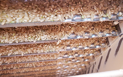 機械乾燥に対して、天日乾燥(自然乾燥)は時間と労力がかかります。しかし天日乾燥すると2週間程の乾燥期間に太陽の光をたっぷり浴び、実の熟度が増しておいしいお米になると言われています。