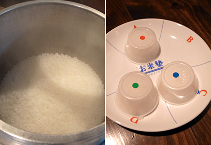 3品種の米、ササニシキ・ゆめぴりか・玄米(ひとめ漬時間はあえて設けず、直ちに炊き上げた結果を、五ツ星お米マイスター佐藤貴之氏による「食味官能評価」と、機械を使用した「理化学的測定」で比較します。