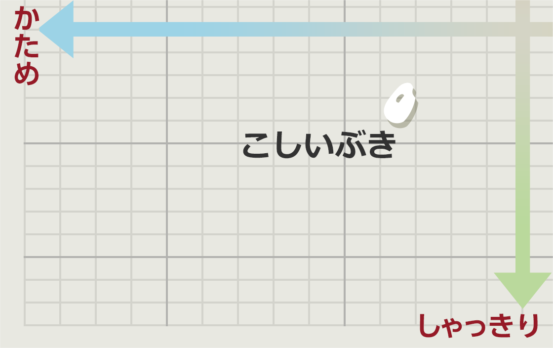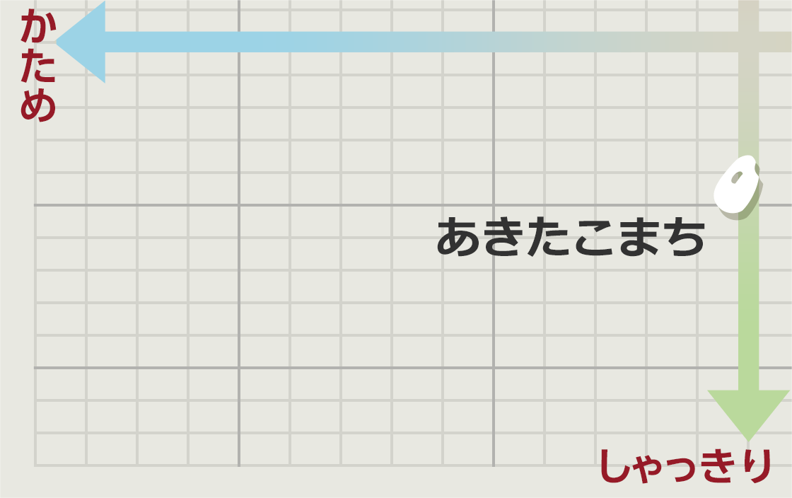 コシヒカリの血を受け継ぐ良食味米と、「小野小町」にちなんで名付けられた秋田産品種です。やや小粒で粒に透明感があり、甘みと粘りが強く、弾力性があるお米。しっかりした粒感があり、硬めに炊き上がるのが特長です。冷めてもおいしさを保ちます。