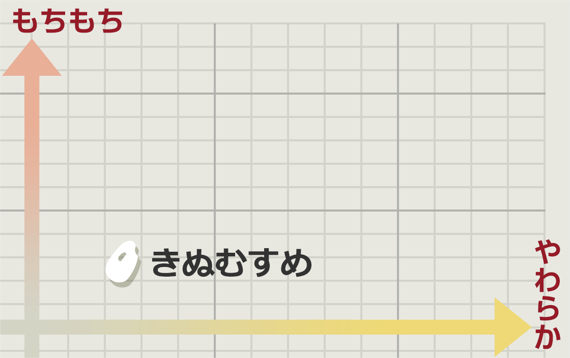 炊き上がりの輝きが「絹」のように美しいと言われる、関東地方や近畿地方で広く栽培されている品種です。味、つや、粘り、香りが優れたお米。やや硬めで適度な粘りと甘みがあり、さっぱりした食感が特長です。冷めてもおいしさを保ちます。