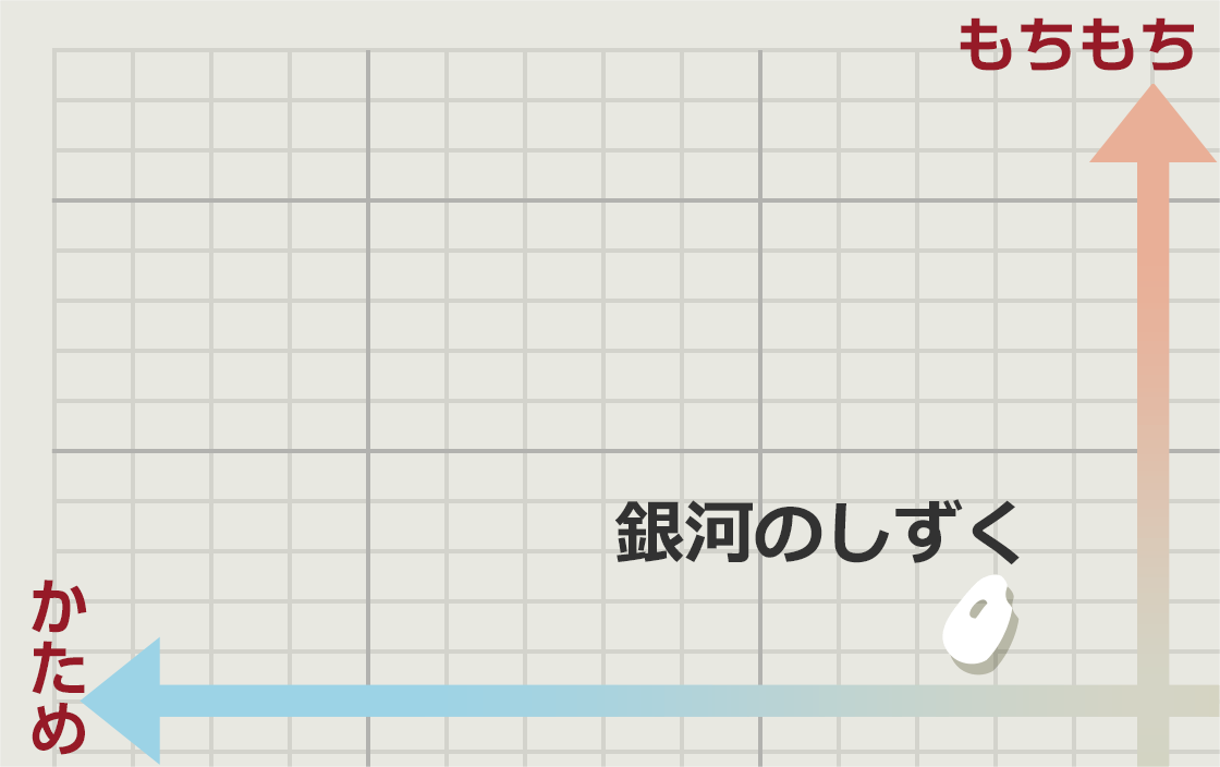 キラキラと光る星空から、お米一粒一粒の輝きをイメージして命名されました。「銀河」は岩手、「しずく」はお米の透明感ある白さを表現しています。冷めてもおいしい、バランスのとれた食味です。