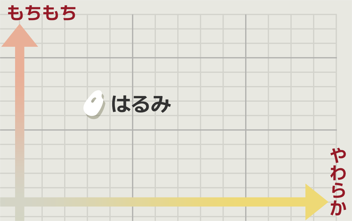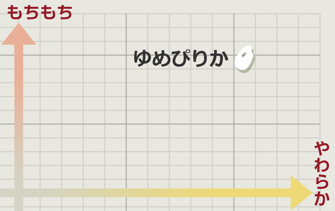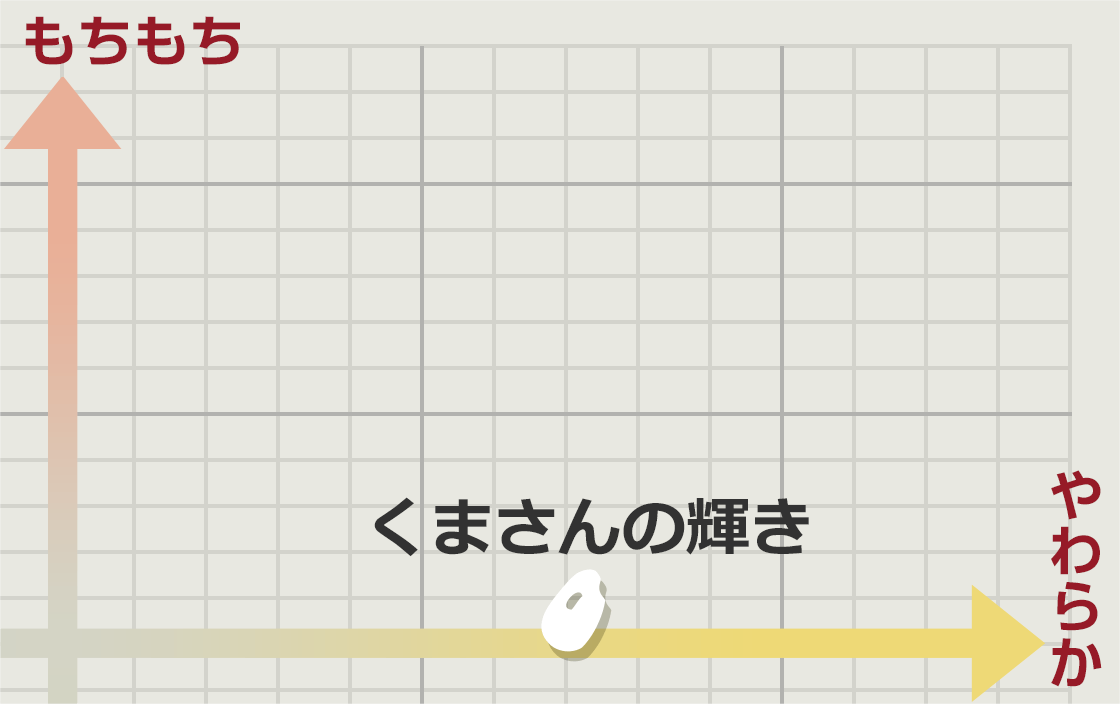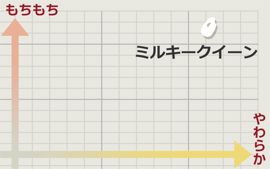 <ミルキー>の名の通り乳白色が特長。他のお米とブレンドして楽しむ方も多い品種です。もち米に近い特性を持っているため(低アミロース米)、粘りが強く、もちもちした食感が特長。軟らかく炊き上がり、独特の香りがあるお米です。冷めても硬くなりにい特長も持ち合わせます。