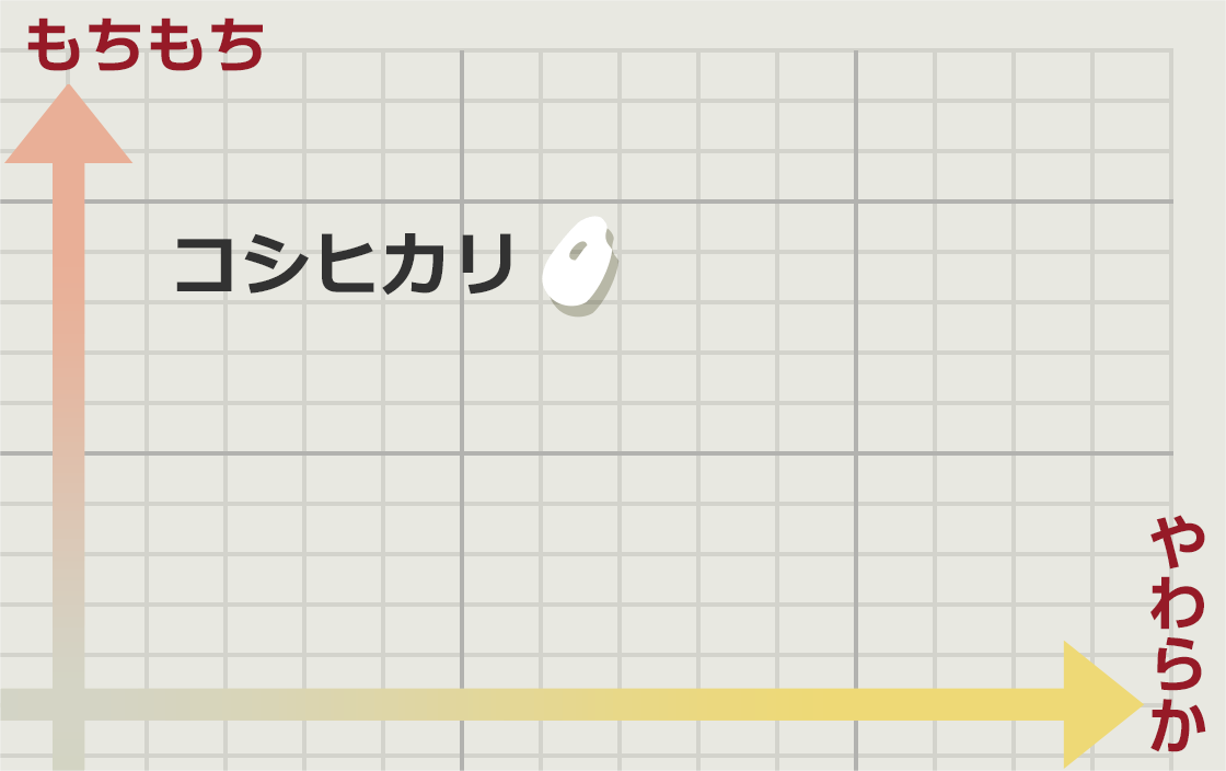 全国的に広く作付けされ、おいしいお米の代名詞となっている人気の品種です。味、弾力、つや、香りに優れ、特に粘りが強いのが特長。冷めてもおいしさを保ちます。全国各地で作られているため、産地によって味や粘り、硬さに違いがあるお米です。