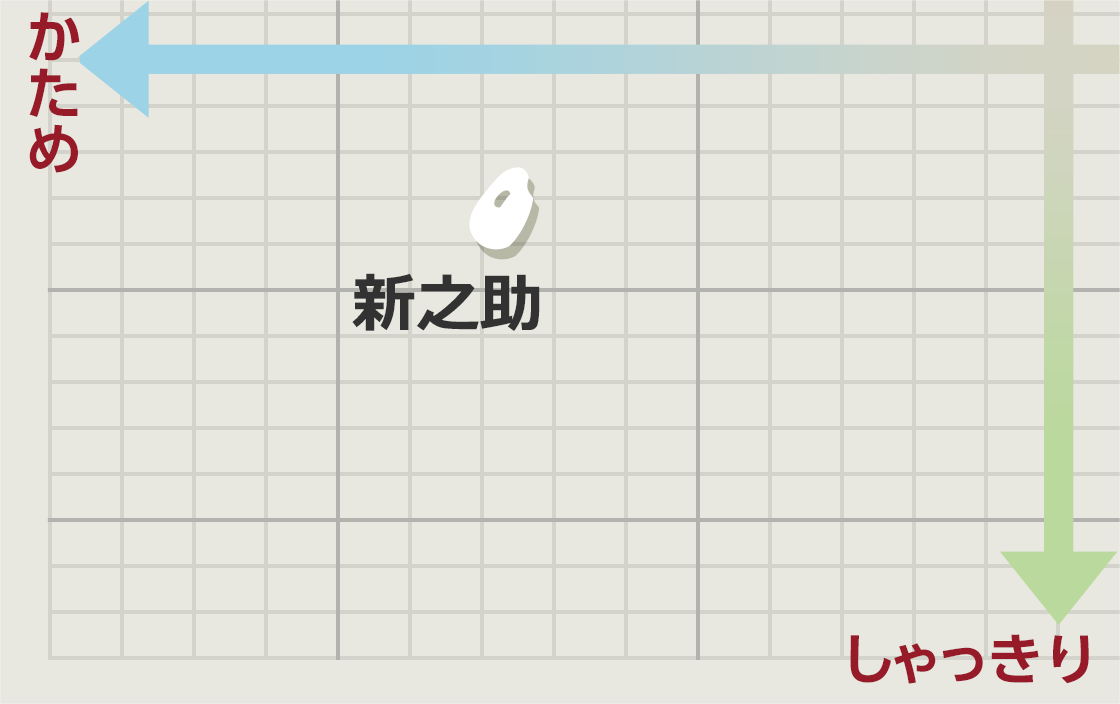 新之助の「新」は、新しい&新潟の「新」。コシヒカリとは異なるおいしさを追求した品種らしく大粒でツヤがあり、しっかりとした粒感と粘り、そして甘みとコク、芳醇な味が特長です。